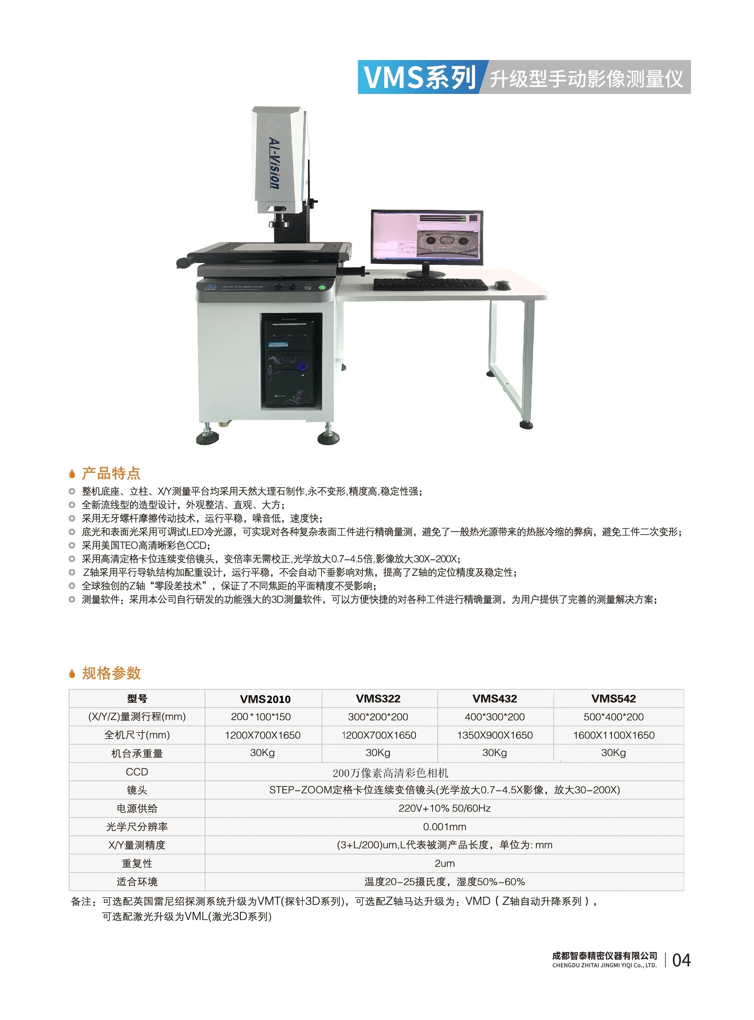 成都智泰精密儀器有限公司專注于精密測(cè)量?jī)x器,人工智能,智能制造領(lǐng)域,專業(yè)從事智能視覺自動(dòng)化檢測(cè)解決方案的貿(mào)易型企業(yè)。公司成立于2011年,位于天府之國(guó)成都,現(xiàn)有行業(yè)精英十余人,辦公倉儲(chǔ)面積200余平米。 公司主要產(chǎn)品為精密光學(xué)影像測(cè)量?jī)x,精密輪廓形狀測(cè)量?jī)x,精密機(jī)器人定位系統(tǒng),精密智能視覺尺寸檢測(cè)儀器,精密表面缺陷智能檢測(cè)設(shè)備,工業(yè)工程特種機(jī)器人。 公司憑借過硬的技術(shù)實(shí)力和產(chǎn)品方案,率先進(jìn)入智能視覺自動(dòng)化檢測(cè)領(lǐng)域,推廣以精密智能視覺自動(dòng)化檢測(cè)為基礎(chǔ)的機(jī)器人自動(dòng)化應(yīng)用,公司不斷整合上下游的資源,擁有巨大的全產(chǎn)業(yè)鏈優(yōu)勢(shì)。客戶群體覆蓋了我國(guó)精密制造業(yè)的多數(shù)領(lǐng)域,包括航空、航天、軍工、汽車、新能源、光伏、食品,精密電子、精密機(jī)械、模具、PCB、LCD、五金、塑膠、醫(yī)療、教育、計(jì)量及科研院所等行業(yè)。 公司創(chuàng)新的產(chǎn)品能滿足生產(chǎn)與制造行業(yè)客戶的要求,訓(xùn)練有素的工程師能及時(shí)提供多種技術(shù)服務(wù),如解...